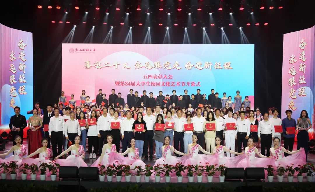 本网讯 5月24日,五四表彰大会暨第34届大学生校园文化艺术节开幕式在下沙校区普华大剧院举行。校领导班子成员李金昌、钟晓敏、黄建新、余建森、王奎泉、孙旭东、李占荣、徐晓东、董进才、申屠莉、楼胆群出席大会。各党群部门主要负责人,各学院党委书记、副书记、团委书记,青年教师代表和学生团员代表等参加大会。