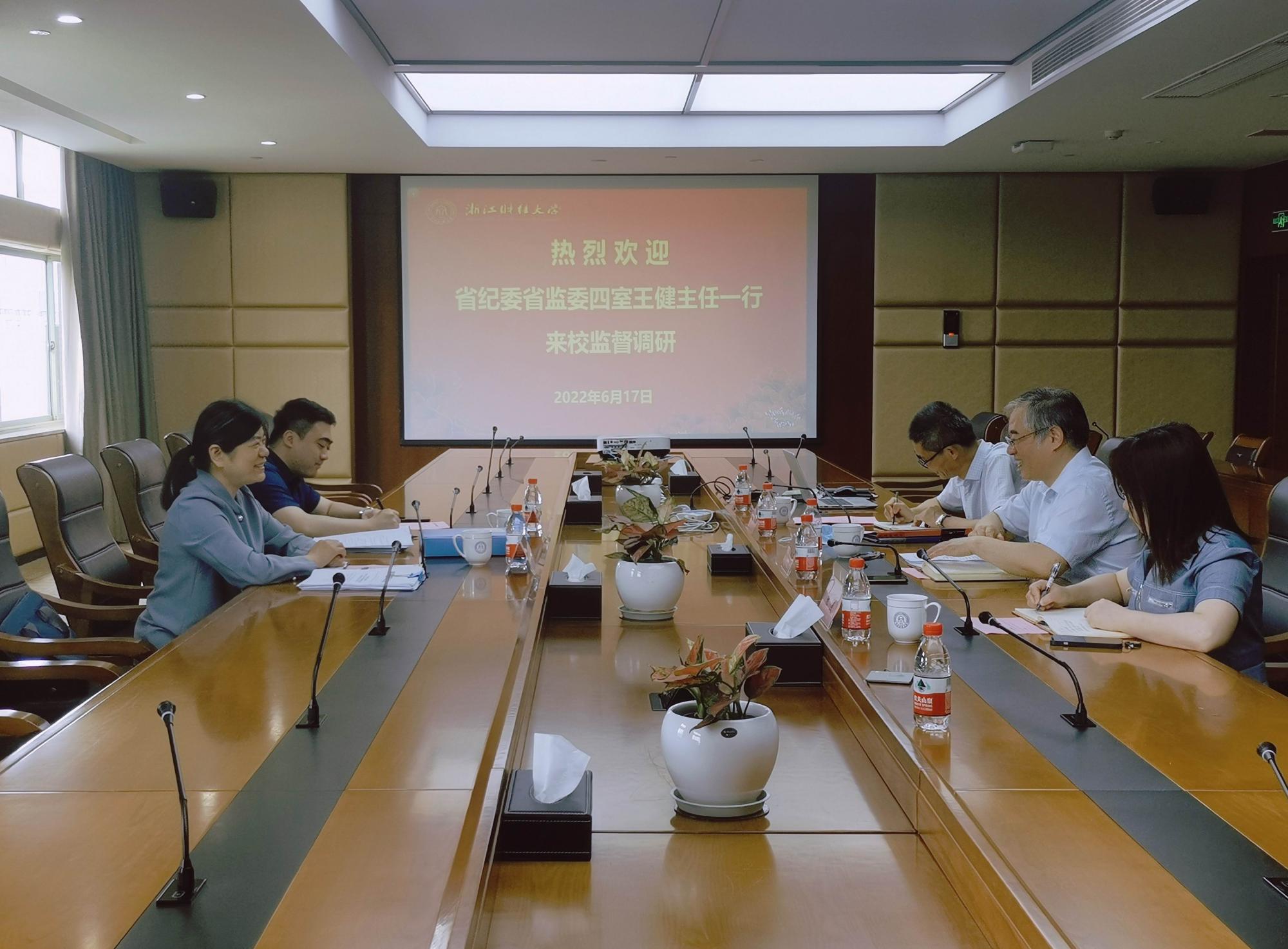 本网讯 6月17日,省纪委省监委第四监督检查室主任王健来校开展监督调研工作,并分别与校党委书记李金昌,党委副书记、校长钟晓敏进行了谈话交流,与专职纪检监察干部开展了座谈交流。