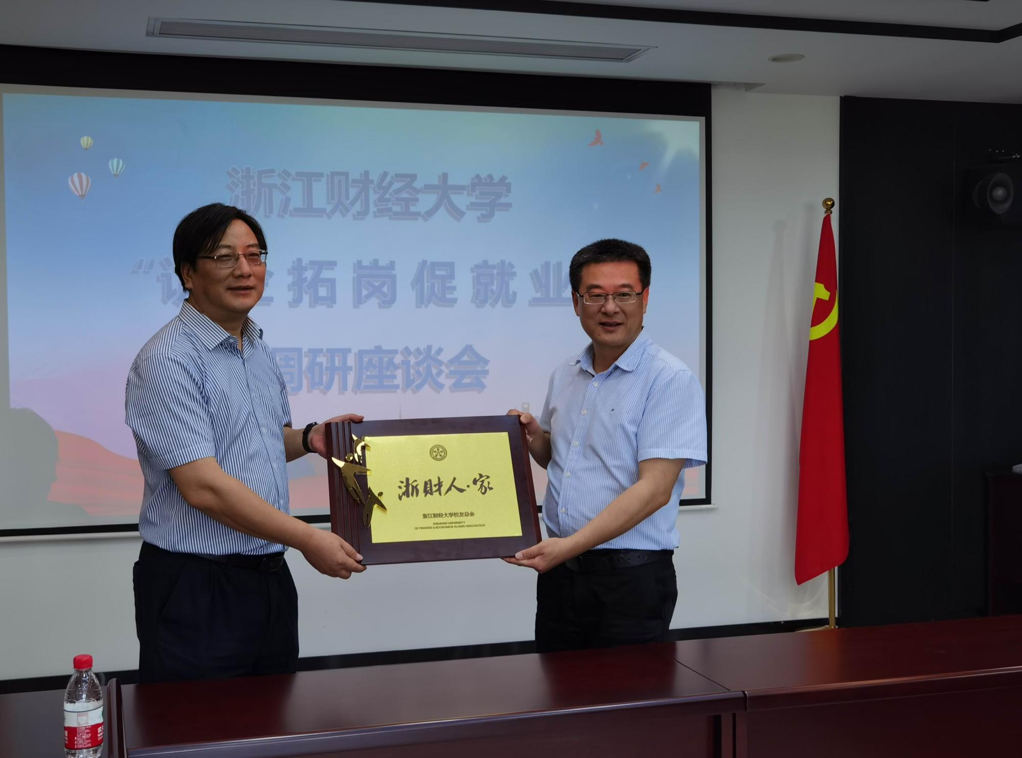 本网讯 6月25日,学校第三家“买球人•家”授牌仪式在嵊州大诚联合会计师事务所举行。校党委委员、副校长徐晓东,嵊州校友会会长葛华军,副会长王正浩、王智勇、张波等校友出席授牌仪式。