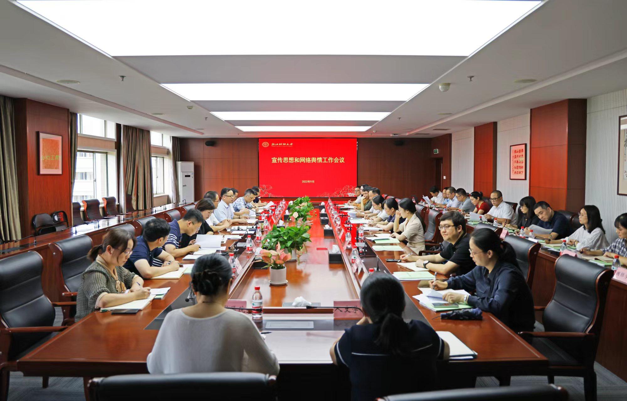 本网讯 9月16日,学校召开宣传思想和网络舆情工作会议,研究部署相关工作,迎接党的二十大胜利召开。校党委副书记余建森出席并讲话。党委委员,组织部、宣传部、统战部部长楼胆群主持会议。相关职能部门负责人、各二级党组织书记参加会议。