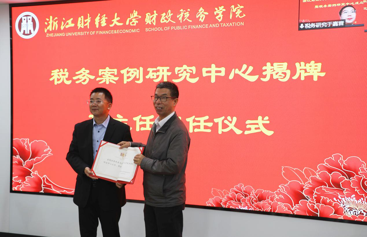 财政税务学院院长司言武为案例研究中心主任董根泰教授颁发聘书