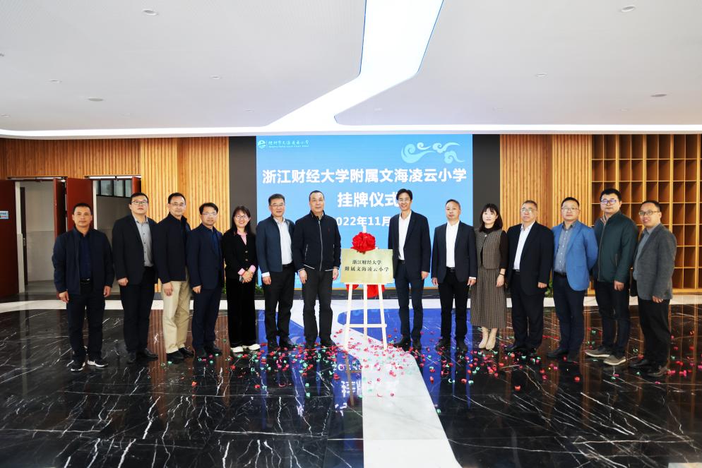 本网讯 11月8日,学校4所附属学校正式挂牌,杭州市文海凌云小学、听涛小学、文瀚幼儿园、云帆幼儿园分别增挂“买球体育官方网站附属文海凌云小学、听涛小学、文瀚幼儿园、云帆幼儿园”校牌。校党委书记李金昌,党委委员、副校长徐晓东,相关职能部门负责人与4所学校领导、师生代表出席挂牌仪式。