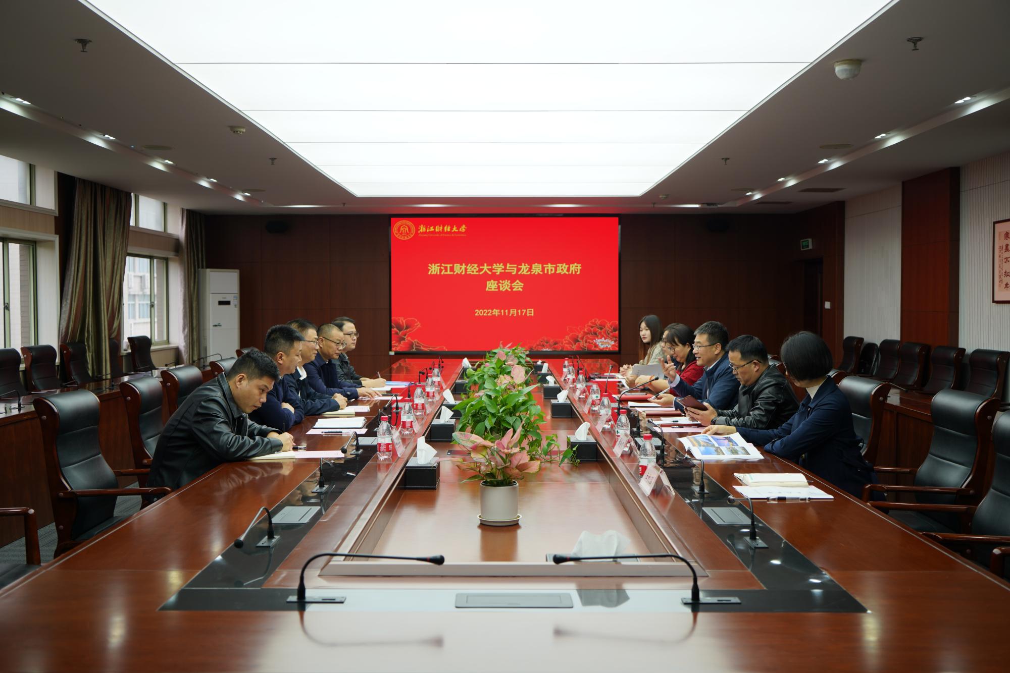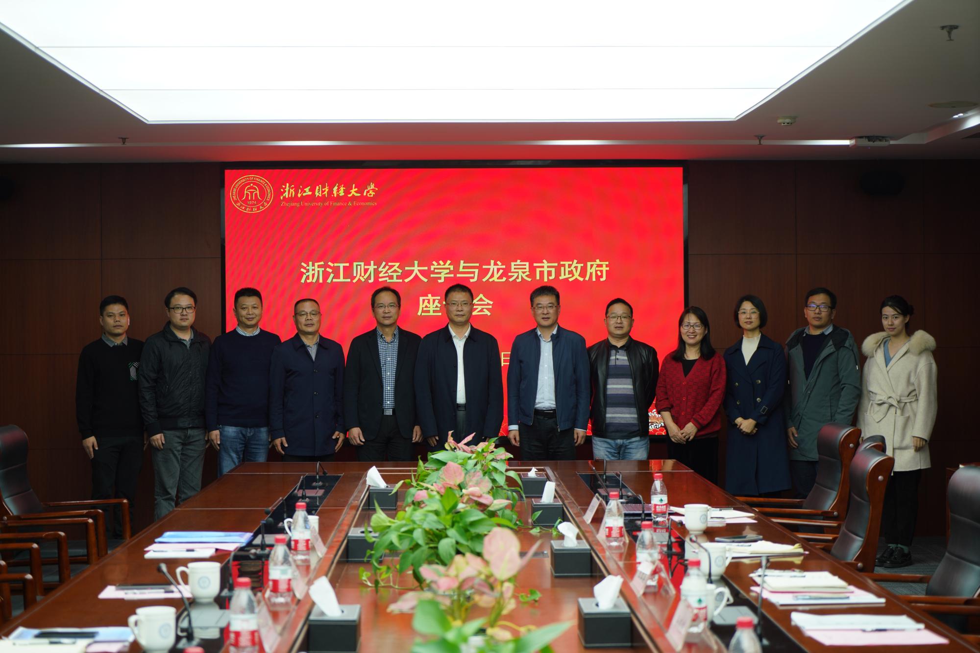 本网讯 近日,学校与龙泉市政府召开座谈会。校党委副书记余建森,党委委员、副校长徐晓东,龙泉市人大常委会副主任卢士俊、教科文卫工委主任叶亚东,龙泉市查田镇党委副书记、镇长吴臻华,镇党委副书记高伟庆,副镇长刘先荣等出席座谈会。