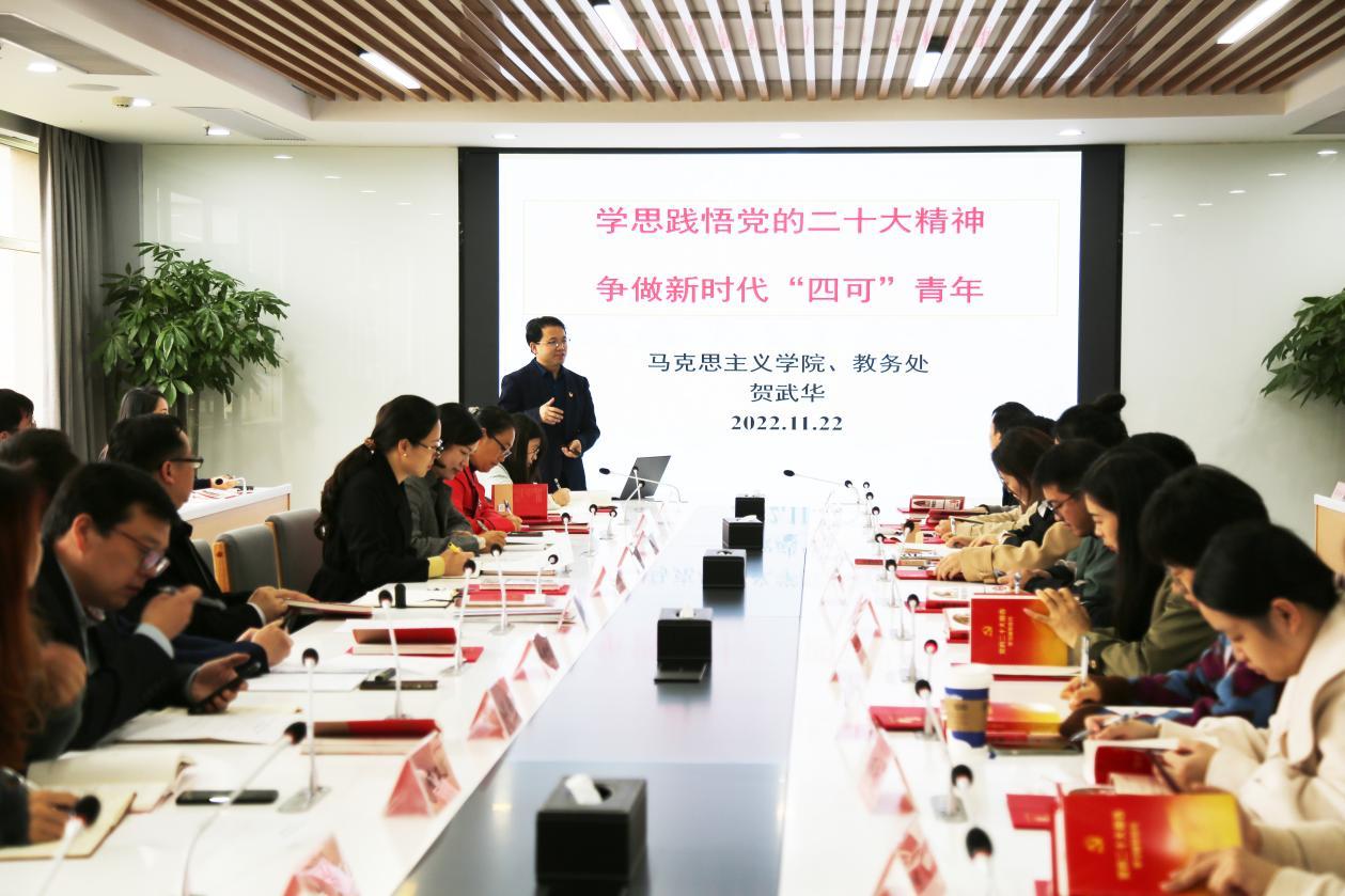 教务处处长、马克思主义学院院长贺武华以《学思践悟党的二十大精神 争做新时代“四可”青年》为题,从习近平总书记对青年的深情召唤与期待、“四可青年”的“四位一体”进路、争做“进德修业 与时偕行”优等生等方面分享了对于新时代高等教育发展与人才培养问题的思考。