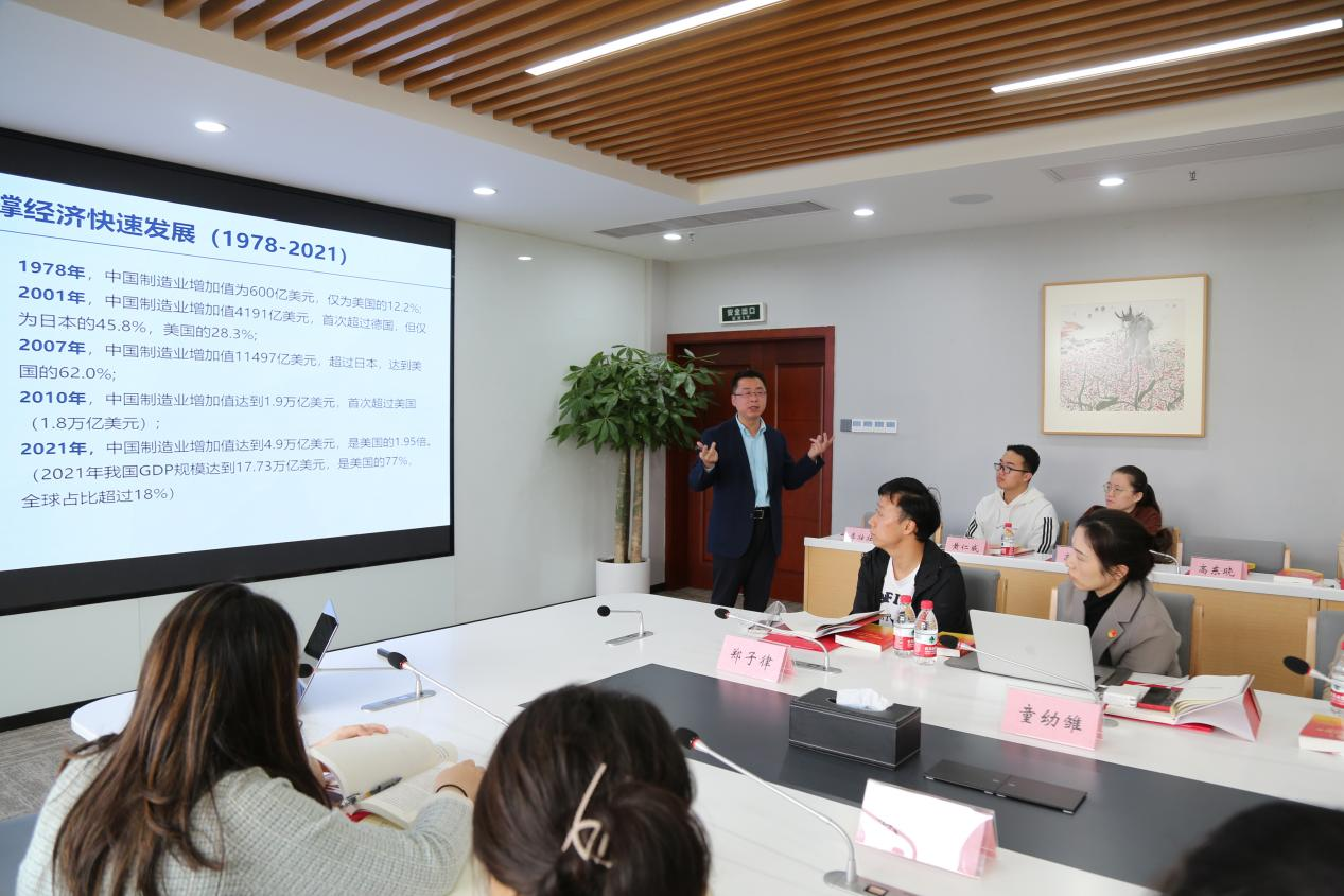 科研处处长金通以《扎实推进科技创新 奋进中国式现代化新征程》为题,从中国式现代化的本质特征、中国式现代化与科技创新、培养高素质拔尖人才,推动科技创新和提升科技成果转化率等方面进行专题宣讲,分享了对不断提高自主创新能力,夯实科技强国基础的思考。