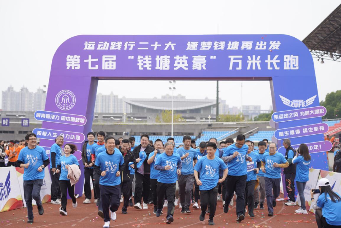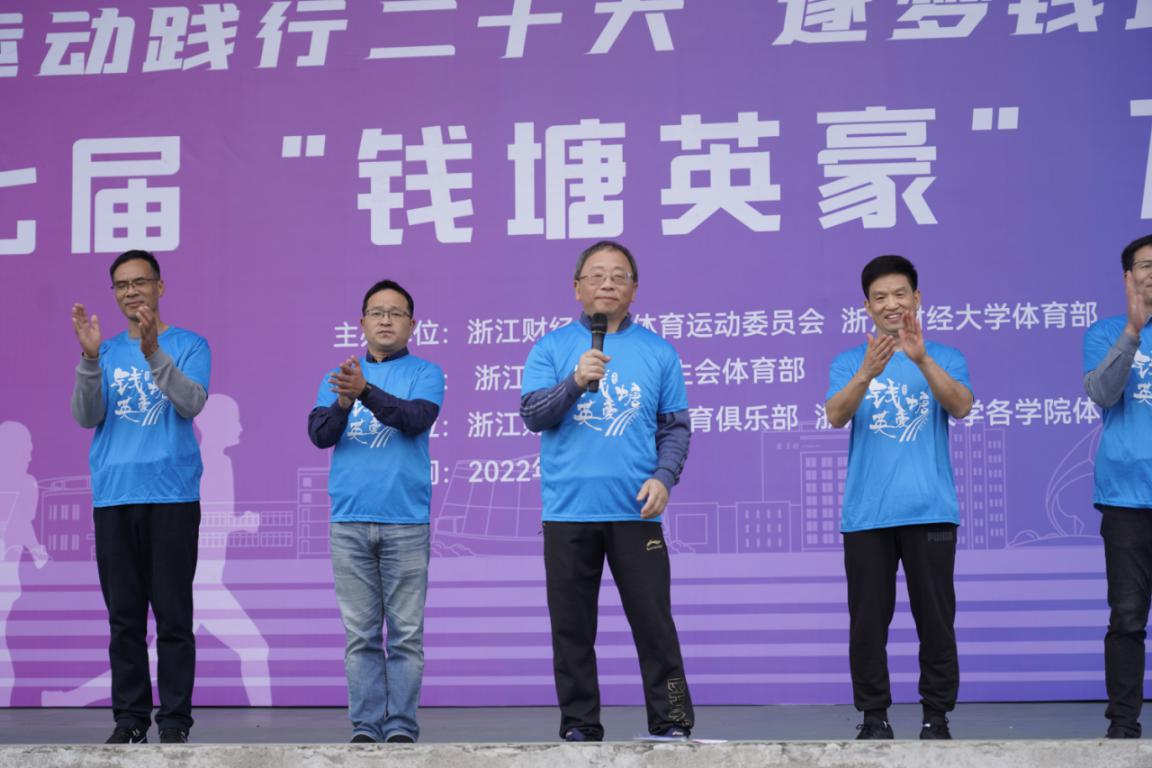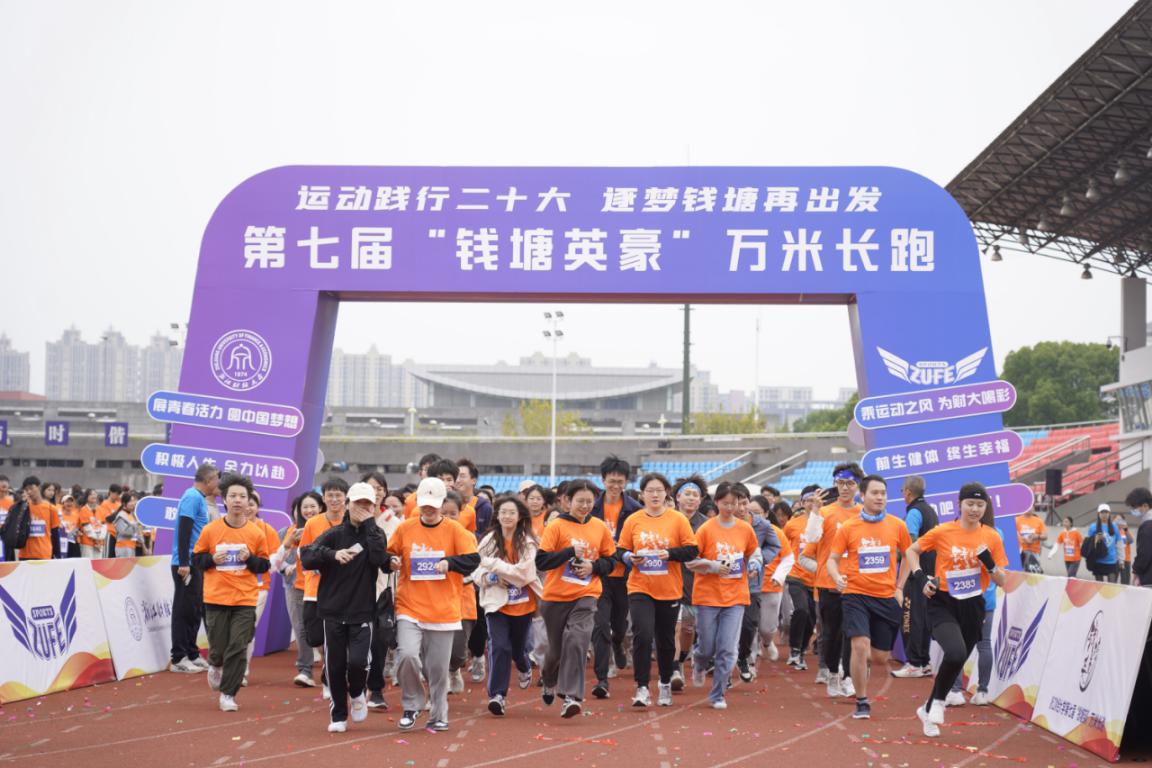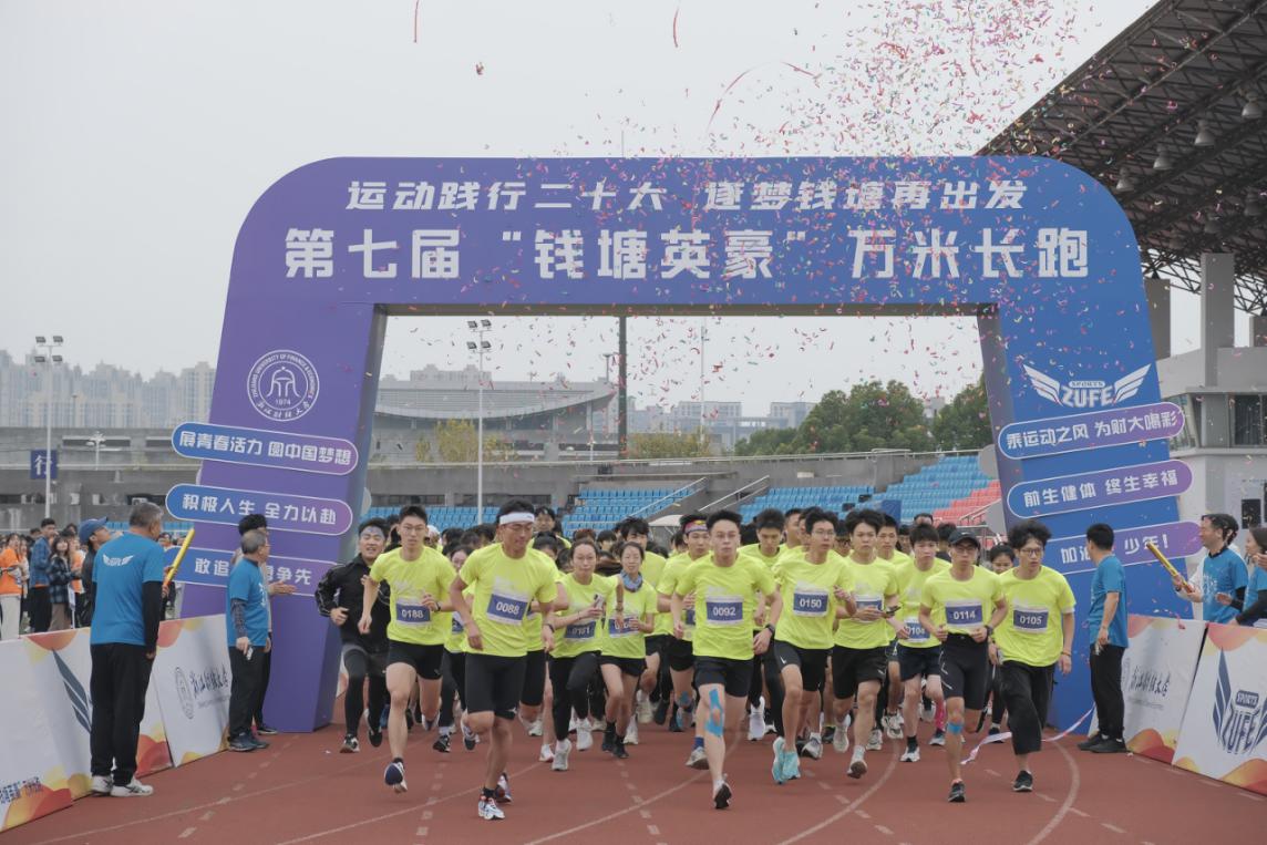 本网讯 近日,学校第七届“钱塘英豪”万米长跑活动在下沙校区西田径场开跑。校党委副书记、校长钟晓敏出席并宣布活动开幕。党委委员、副校长董进才致开幕词。各学院及相关职能部门负责人等参加开幕式。