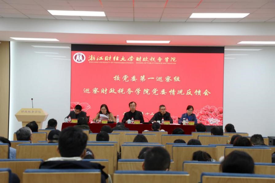 本网讯 12月1日,学校召开第七轮巡察工作反馈会,分别向财政税务学院党委、数据科学学院党委反馈巡察意见。校党委副书记黄建新,党委委员、纪委书记孙旭东,第一巡察组组长沈晓敏,第二巡察组组长王聪以及巡察办负责人和巡察组全体成员出席会议。