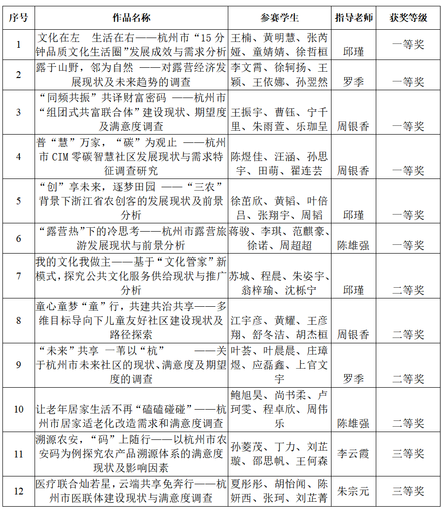 本网讯 近日,由省教育厅、省统计局联合主办的浙江省第十一届“民生民意杯”大学生统计调查方案设计大赛决赛在杭州举行。学校荣获省一等奖6项、二等奖4项、三等奖2项。