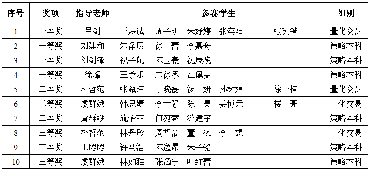 第八届浙江省大学生证券投资竞赛学校获奖名单