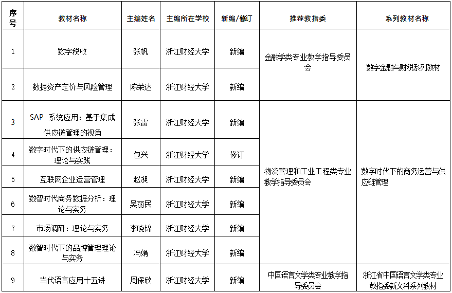 浙江省普通本科高校“十四五”首批新工科、新医科、新农科、新文科重点教材立项项目(教指委申报)
