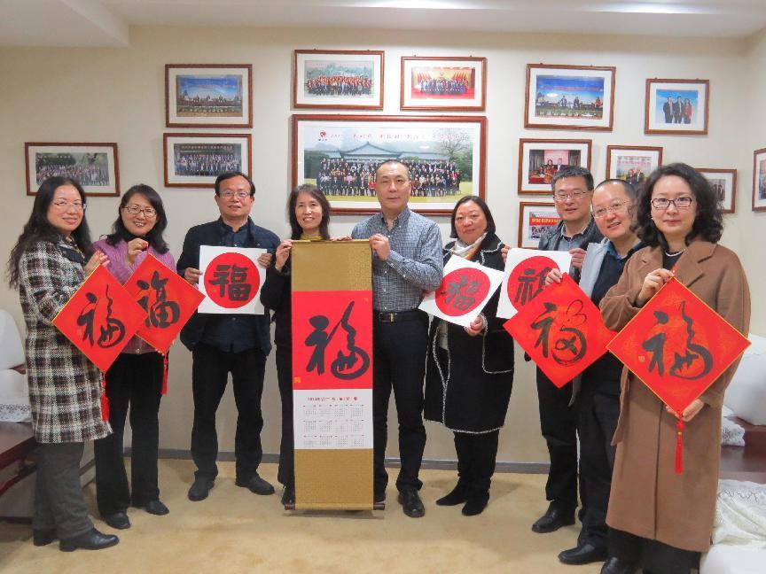 李金昌充分肯定了校友企业近年来取得的成绩,对广大校友一直以来对母校各项工作的关心支持表示感谢,并认真听取了校友们对母校建设发展的意见建议。走访过程中,李金昌还现场挥毫泼墨,题写了蕴含美好祝愿的新春“福”字,并送上了由他创作设计的“福”字挂历和兰花水墨画台历,为校友们送去了兔年的新春问候和祝福。