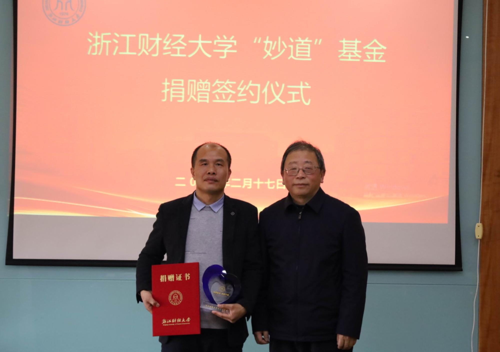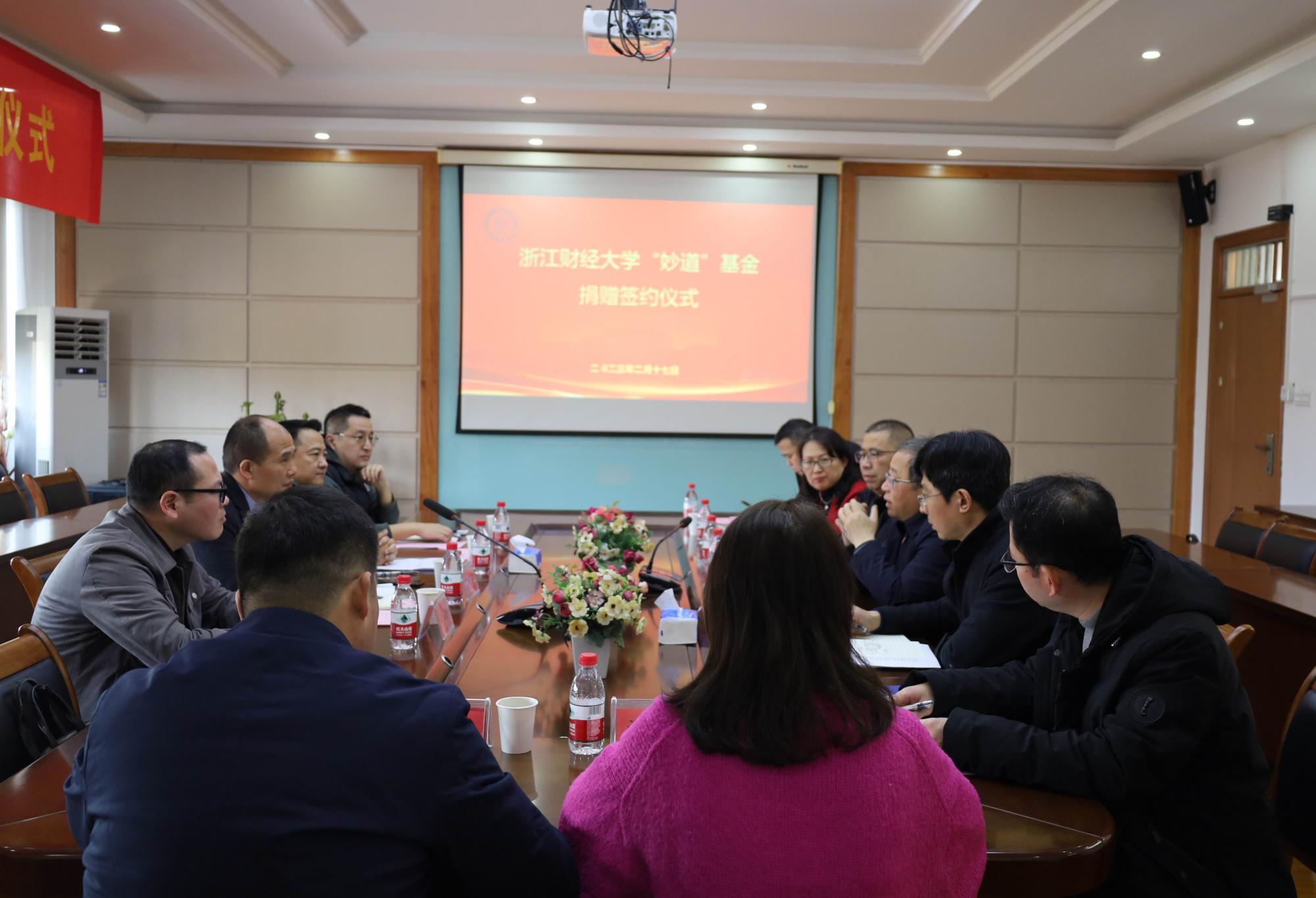 钟晓敏介绍了学校办学历史、学生就业和社会服务等情况。他表示,学校被誉为浙江财税干部的“黄埔军校”、会计师的摇篮、金融家的沃土、企业家的殿堂。妙道基金的设立为进一步推进校企合作、深化产教融合提供了保障和支持。希望双方进一步拓展合作领域,深化合作内容,提升合作层次,实现互利共赢。