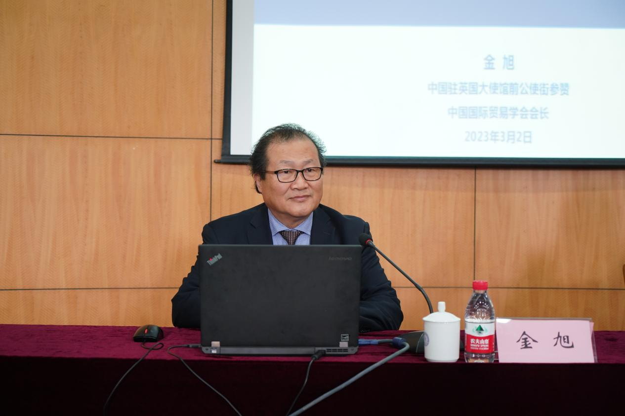金旭曾任中国驻土耳其大使馆三等秘书、供应港澳三趟快车办公室主任、中国驻美国旧金山总领事馆商务参赞、商务部美洲大洋洲司副司长、中国驻英国大使馆公使衔商务参赞等职务,拥有丰富的外交事务和国际谈判经验。他从自身成长与求学经历讲起,回顾了作为外交官在土耳其、美国等地的精彩经历,分享了作为外贸人对外交工作的真实看法和真知灼见。他指出,外贸是外交的一部分,甚至是最重要的部分,没有脱离经济的外交,外交离不开政治,也与经济紧密相连。针对当前国际形势的热点问题,金旭从丰富的援外培训经历出发,从外贸角度深入分析了当前中外关系,指出在国际秩序大变革的时代,中国具备“授人以鱼不如授人以渔”的大国胸怀,开放的中国的崛起和复兴应当得到世界上更多国家的认可和支持。