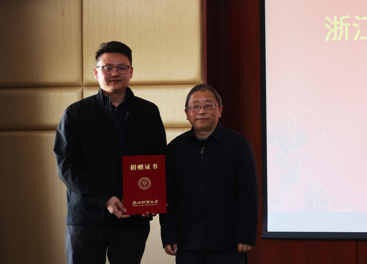 捐赠签约仪式上,钟晓敏向徐海平颁发了捐赠证书,徐晓东向徐海平颁发了纪念杯。社会合作办主任张红英、工商管理学院院长王建明与徐海平签署了捐赠协议。工商管理学院党委书记黄卫华代表学院接受了捐赠支票。