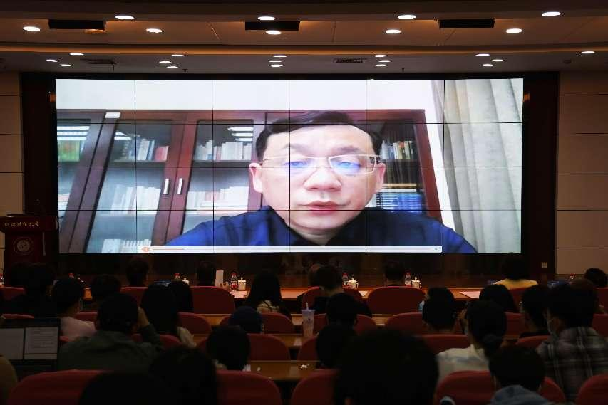 张斌在视频致辞中向访学学生和获奖学生表示祝贺,并阐明了两校合作办学的积极意义,表达了对访学学生的殷切期待,并祝愿同学们此行学有所得,成为大家求学生涯中一段非常难忘的学习经历。