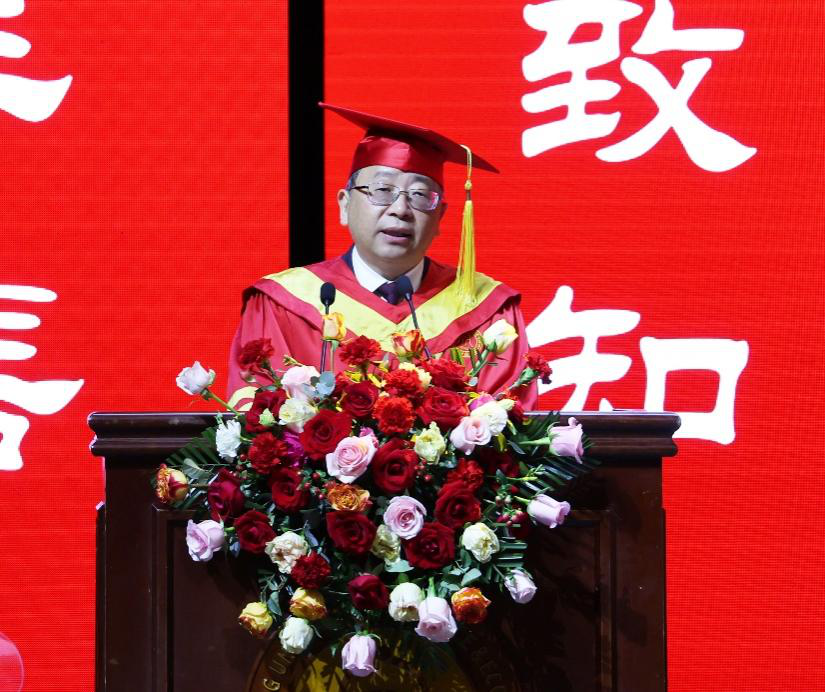 党委副书记、校长钟晓敏以“青春有志,守正创新,共赴时代之约”为主题发表了热情洋溢的讲话,对同学们提出了四点期望:一是以担当之责,坚定不移追求理想。始终坚定不移听党话、跟党走,怀抱梦想又脚踏实地,敢想敢为又善作善成,立志做有理想、敢担当、能吃苦、肯奋斗的新时代好青年,在为祖国、为民族、为人民的不懈奋斗中绽放绚丽的青春之花。二是以奋斗之姿,实干笃行扎根基层。不驰于空想,不骛于虚声,勇挑重担、埋头苦干,攻坚克难,在磨砺中适应,在坚守中成长,以实干笃行和锲而不舍,在行胜于言中成就人生新高度。三是以守正之心,持之以恒终生学习。始终保持最初的空杯心态,对知识怀有敬畏和谦卑,真正把终生学习作为一种生活态度、一种精神追求,在不断学习中克服本领恐慌、在不断求知中练就过硬本领。四是以智慧之能,矢志不渝开拓创新。保持敢闯敢干的精神、敢于尝试的决心和敢于冒险的勇气,激发创新驱动内生动力,将知识、能力、素养、人格有机结合,走出属于自己的创新驱动发展之路。