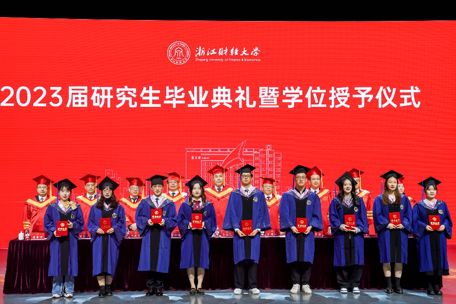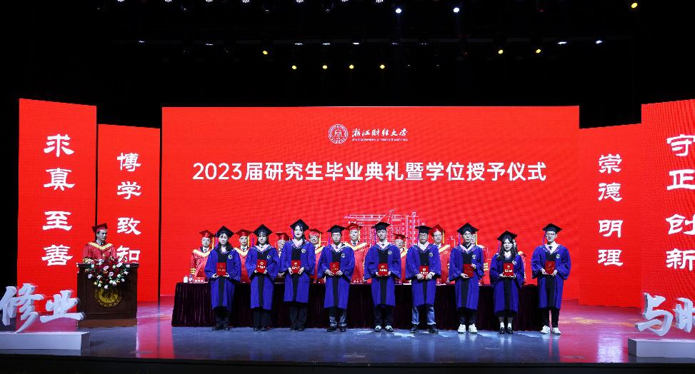 本网讯 3月16日,学校2023届研究生毕业典礼暨学位授予仪式在下沙校区举行。李金昌、钟晓敏、黄建新、余建森、王奎泉、孙旭东、徐晓东、董进才、申屠莉、楼胆群等校领导班子成员出席典礼。相关职能部门负责人、各学院 (研究院)领导、研究生导师代表、全体毕业研究生、在校生代表和亲友代表参加典礼。典礼由党委委员、副校长王奎泉主持。