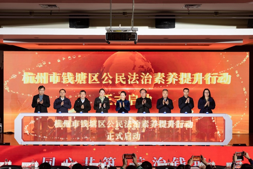 活动现场,与会领导共同按下启动键,标志着钱塘区公民法治素养提升行动正式启动。