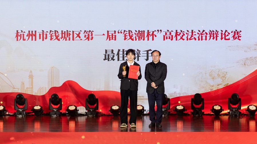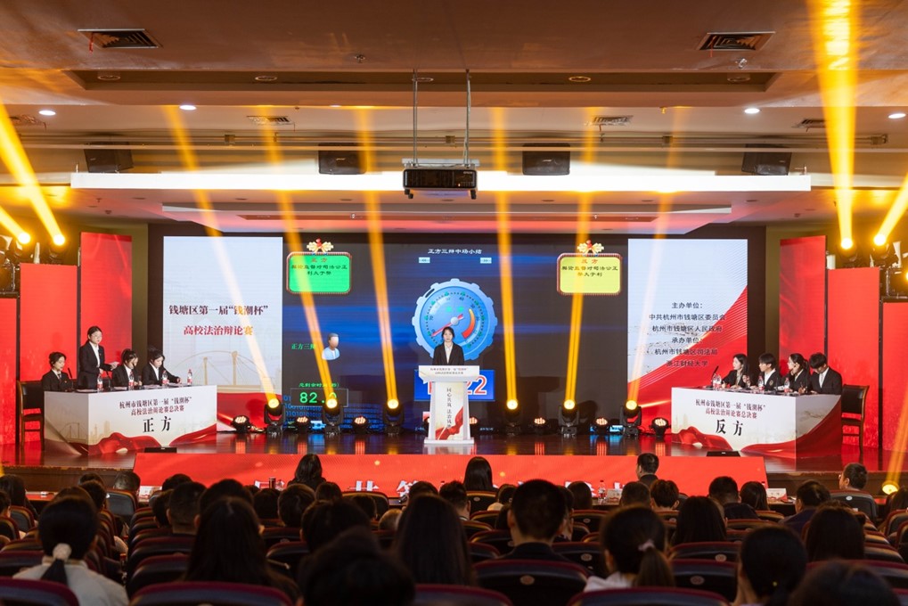 本网讯 3月28日,由钱塘区委、区政府主办,钱塘区司法局、我校承办的钱塘区第一届“钱潮杯”高校法治辩论赛总决赛暨公民法治素养提升行动启动仪式在我校下沙校区举行。校党委副书记黄建新,钱塘区委副书记、政法委书记、区委全面依法治区委员会副主任杨晓峰出席并为获奖选手和团队颁奖,学校相关职能部门、学院负责人及钱塘区人大常委会、区政府、区政协有关领导等参加。