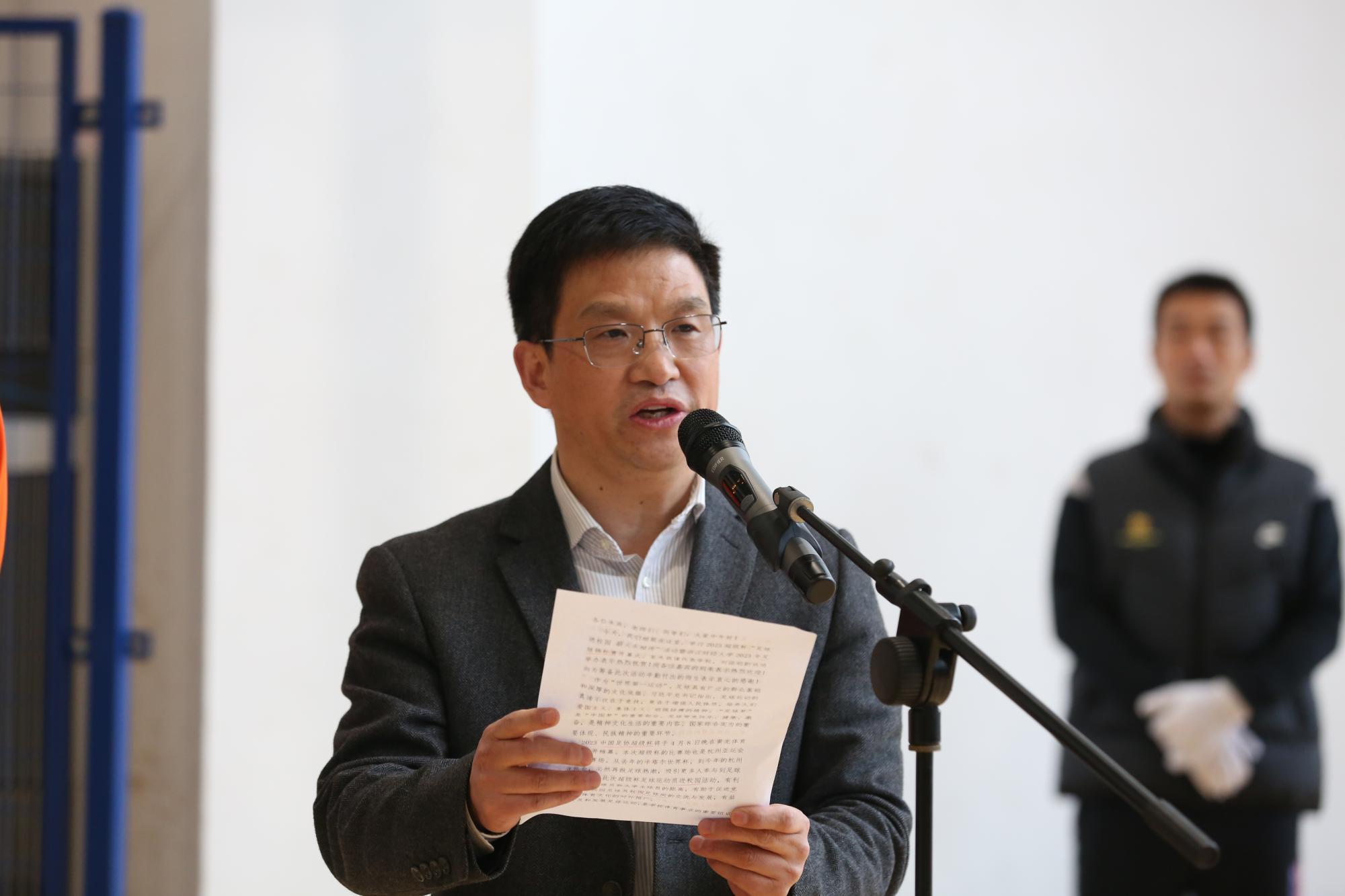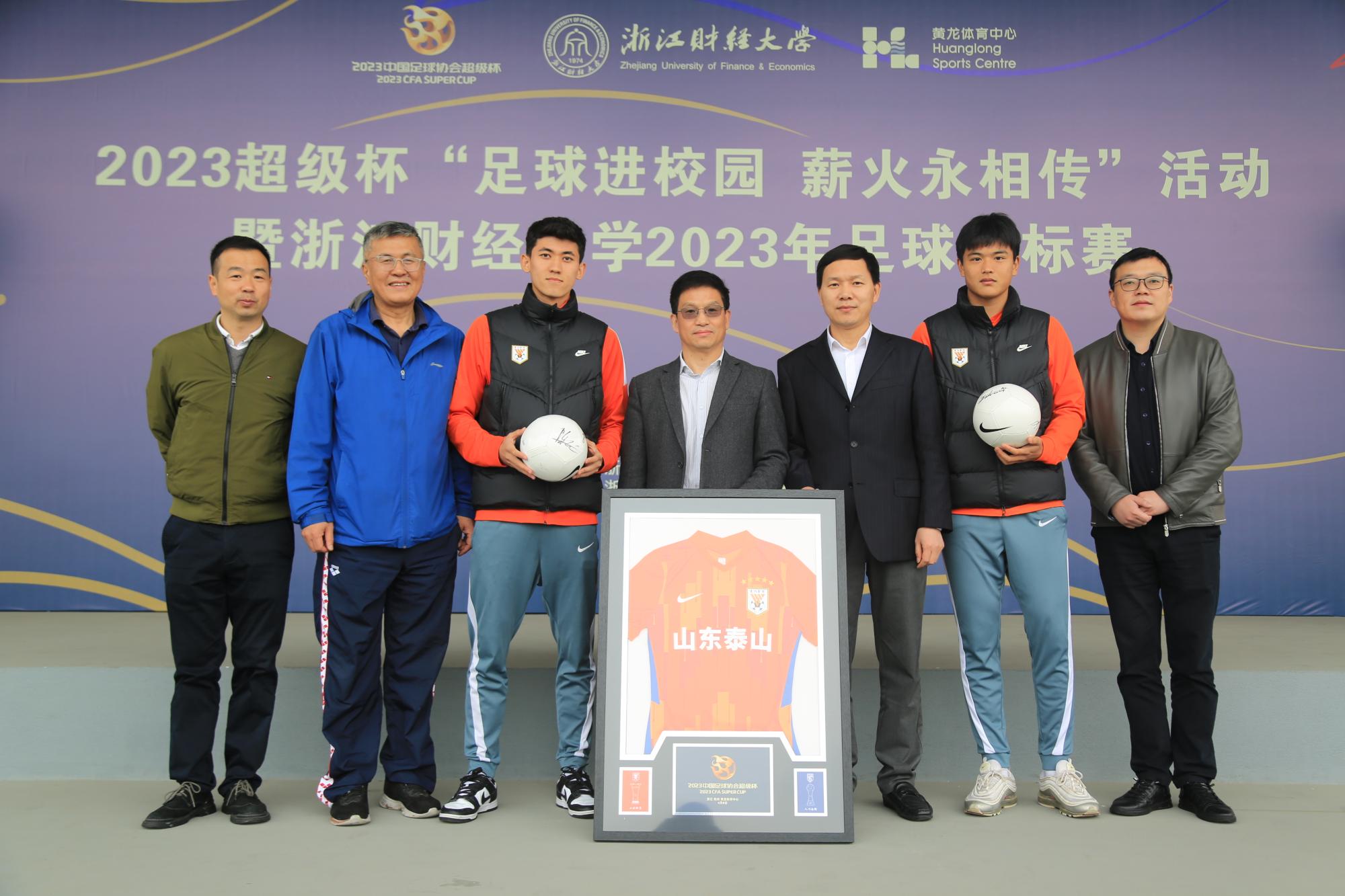 本网讯 4月6日,2023超级杯“足球进校园 薪火永相传”活动暨学校2023年足球锦标赛开幕式在下沙校区举行。校党委委员、副校长董进才,第19届杭州亚运会黄龙场馆群运行团队常务副指挥长、浙江省黄龙体育中心主任沈斌,2023超级杯山东泰山俱乐部球员陈哲宣、买乌郎·米吉提及学校相关部门负责人出席活动。