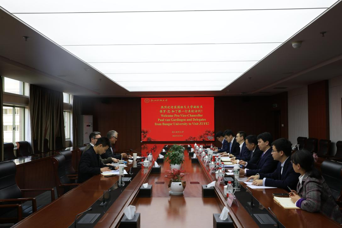 本网讯 4月10日,英国班戈大学副校长保罗·范·嘉丁根、国际事务部主任萨姆·杰克逊·罗伊尔一行来校访问。校党委副书记、校长钟晓敏会见了来访客人,副校长李占荣,国际处、金融学院负责人等参加会见。