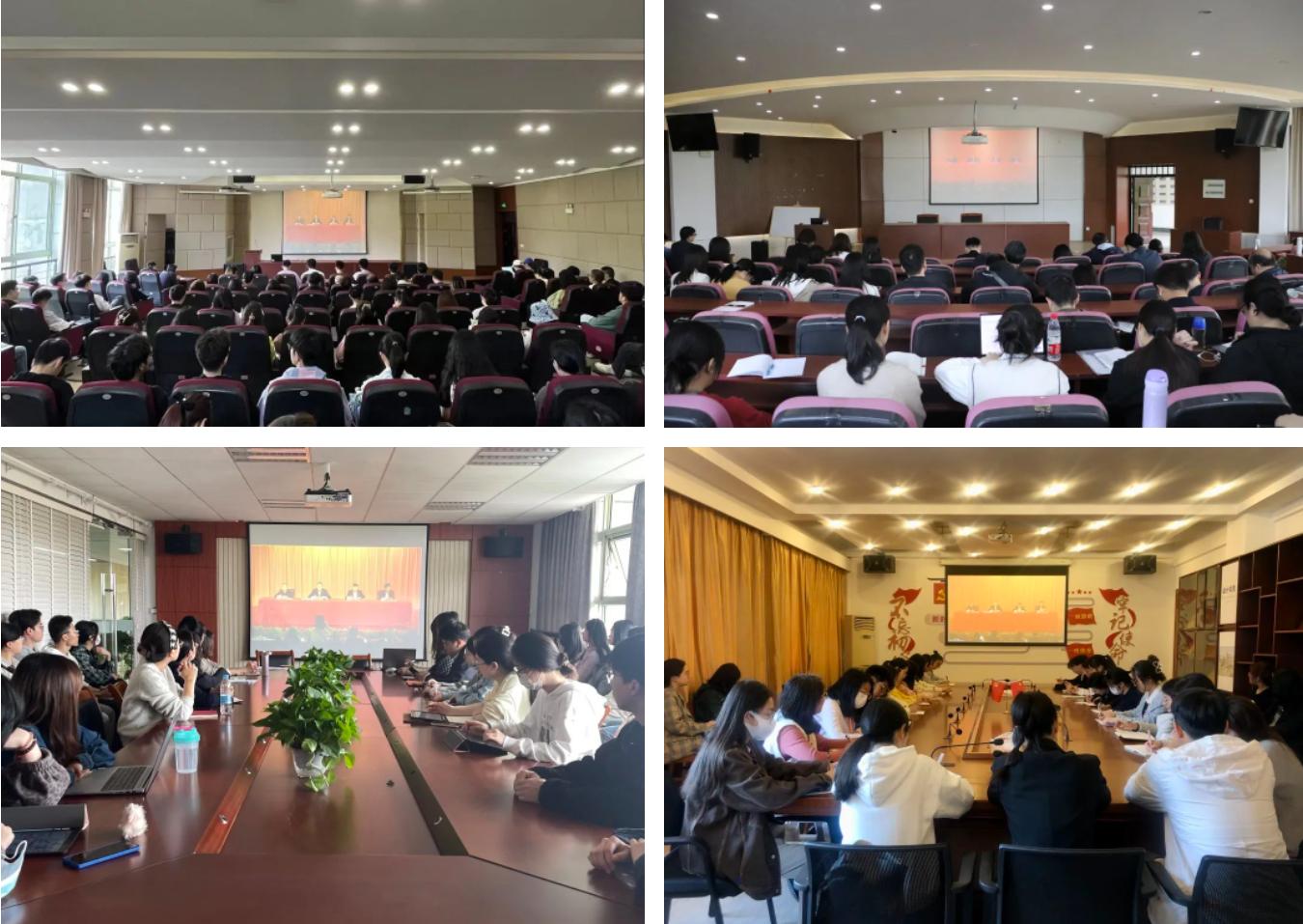 各二级党组织师生党员在会议室、教室等分会场集中观看动员大会直播。