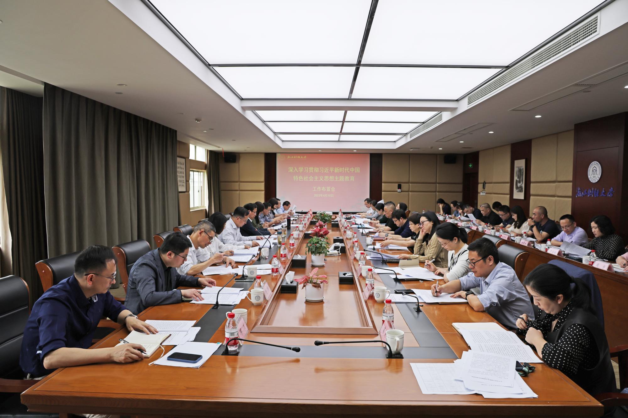 黄建新指出,深入开展学习贯彻习近平新时代中国特色社会主义思想主题教育是当前一项重要的政治任务,时间紧、任务重、要求高,必须坚持原则、严格标准,高质量抓好相关工作。他就开展主题教育工作提出三点意见。一是提高站位,深刻领会主题教育精神实质。要牢牢把握、深刻领悟本次主题教育的重大意义、根本任务、目标要求和工作安排,把主题教育的总要求与学校、学院实际紧密结合,做到循迹溯源学思想、对照标杆强党性、立德树人重实践、凝聚合力建新功。二是对标对表,一体推进主题教育各项安排。要树立系统观念,合理安排活动内容,制定符合自身实际的工作方案,把主题教育与立德树人主责主业、学科专业特色、党建品牌建设、日常工作安排等相结合,严格按照“一表三清单”的时间表、任务书、施工图开展工作。三是加强领导,切实增强主题教育成果实效。要树立同题共答、齐心协力的理念,精心组织、周密部署、推进有力。要加强全过程领导,担起主体责任,依托常规学习,聚焦师生急难愁盼问题,严防形式主义,确保规定动作做到位、特色动作做出彩。