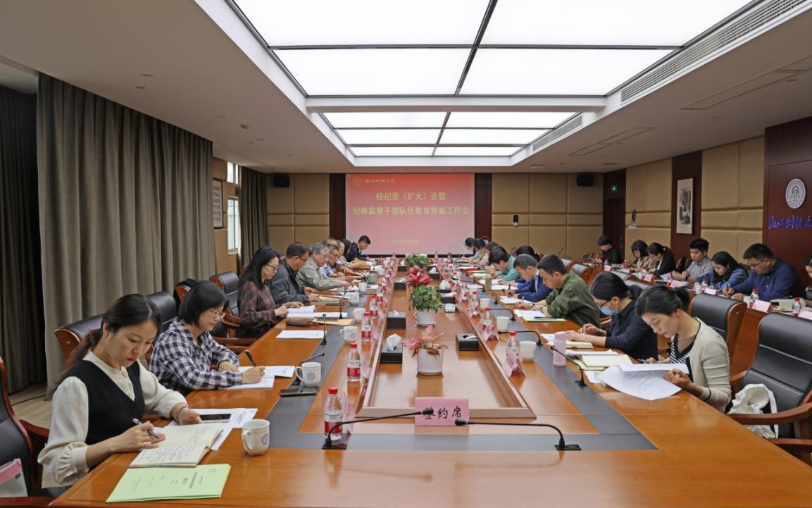 会议深入学习了《习近平总书记主政浙江期间有关纪检监察工作重要论述摘编》、二十届中央纪委委员学习贯彻习近平新时代中国特色社会主义思想和党的二十大精神研讨班精神,传达学习了学习贯彻习近平新时代中国特色社会主义思想主题教育有关要求、《关于开展全省纪检监察干部“强政治、善斗争、争本领”大练兵大比武活动的通知》要求,并结合有关典型案例警示教育,进一步深入学习了“八项禁令”。校专职纪检监察干部和二级纪委书记代表结合学习贯彻习近平新时代中国特色社会主义思想主题教育、纪检监察干部队伍教育整顿学习书目,分享了学原文悟原理心得体会。