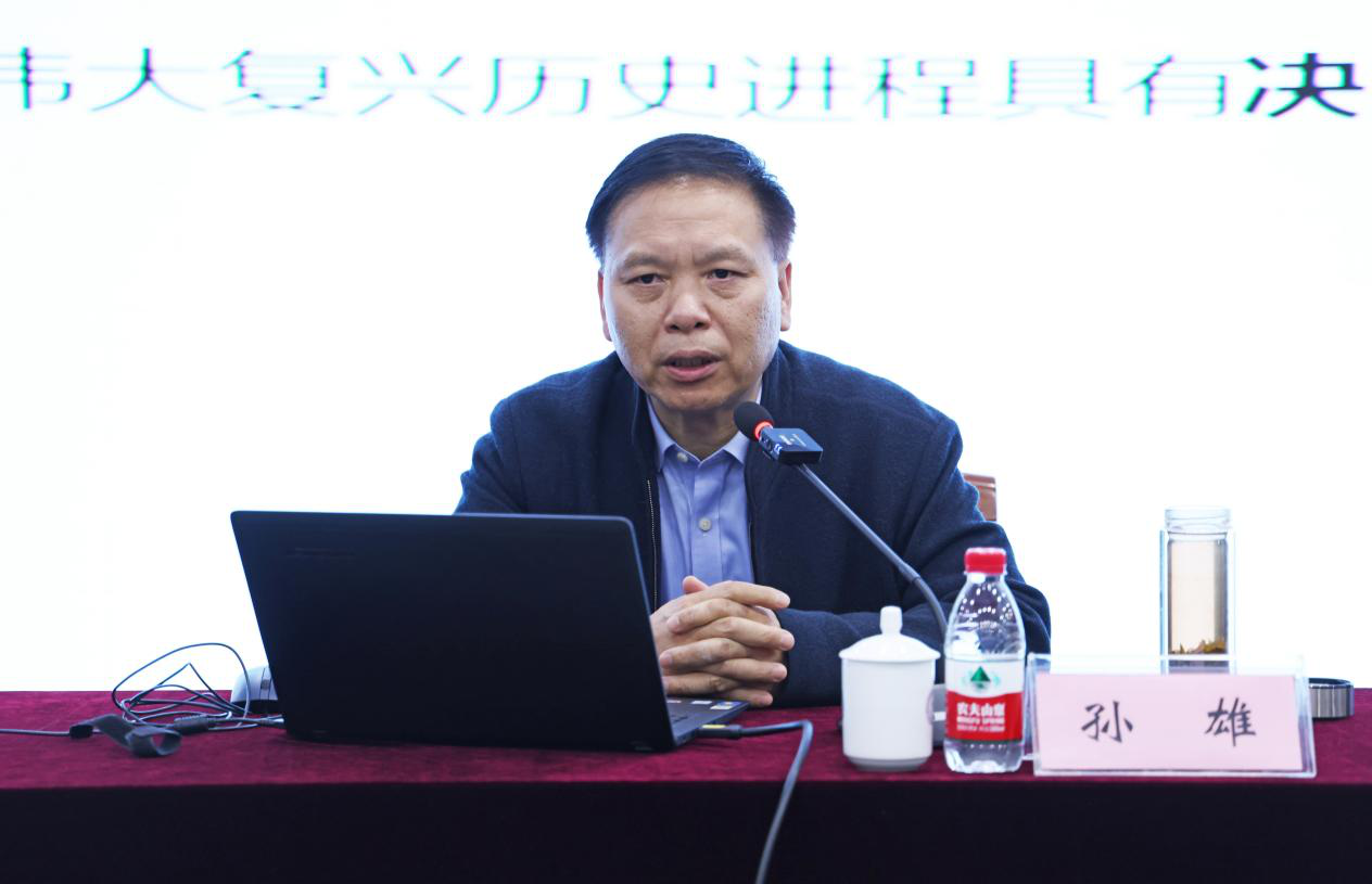 孙雄作题为《学习习近平新时代中国特色社会主义思想》的专题报告。他从新思想形成的历史方位、系统科学的理论体系、马克思主义中国化时代化的新飞跃、新思想的历史地位四个方面深入阐述了习近平新时代中国特色社会主义思想的主要内容和丰富内涵。他指出,习近平新时代中国特色社会主义思想是在把握世界发展大势、应对全球共同挑战、维护人类共同利益的过程中创立并不断丰富发展的,是把马克思主义基本原理同中国具体实际相结合、同中华优秀传统文化相结合的重大理论成果,是党的十八大以来历史性成就和历史性变革的重要理论结晶,实现了马克思主义中国化时代化的新飞跃。习近平新时代中国特色社会主义思想立足时代之基,“十个明确”“十四个坚持”“十三个方面成就”系统回答了新时代坚持和发展什么样的中国特色社会主义、怎样坚持和发展中国特色社会主义;建设什么样的社会主义现代化强国、怎样建设社会主义现代化强国;建设什么样的长期执政的马克思主义政党、怎样建设长期执政的马克思主义政党这三大时代之问。