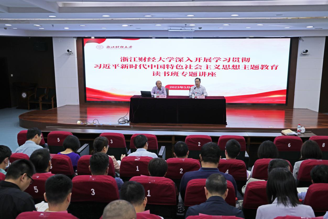 本网讯 5月6日,学校深入开展学习贯彻习近平新时代中国特色社会主义思想主题教育读书班专题报告会在下沙校区举行。浙江大学中国农村发展研究院首席专家黄祖辉教授作专题报告。校党委委员,组织部、宣传部、统战部部长楼胆群主持报告会。全体中层干部参加学习。