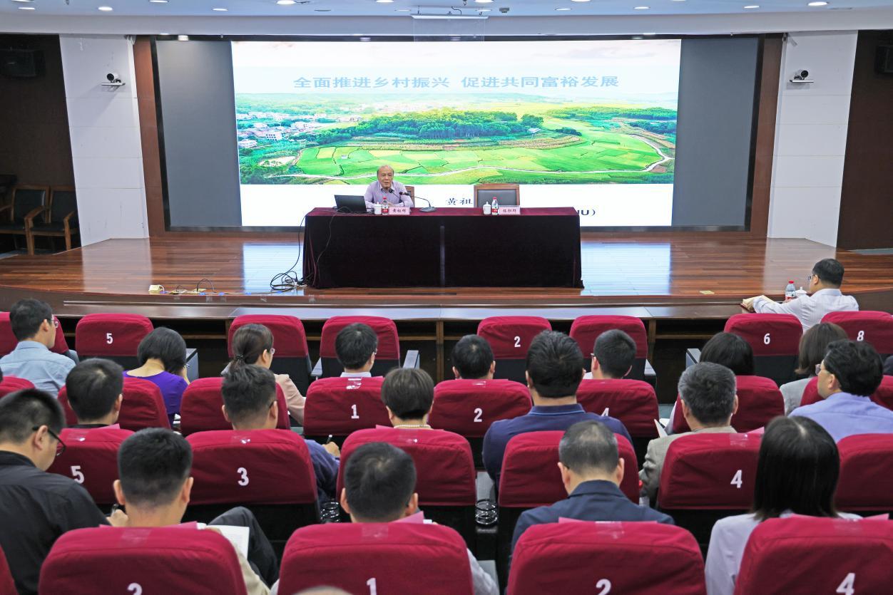 黄祖辉教授作题为《全面推进乡村振兴 促进共同富裕发展》的专题报告。他结合党的二十大报告,围绕全面推进乡村振兴和促进共同富裕发展两大维度作了全面讲解。黄祖辉教授表示,全面推进乡村振兴是党中央着眼全面建成社会主义现代化强国作出的战略部署。习近平总书记在党的二十大报告中对全面推进乡村振兴作出重要部署,强调“坚持农业农村优先发展”“加快建设农业强国”。他从实施乡村振兴战略的战略背景、核心关键、基础与目标等,解读了乡村振兴战略的丰富内涵。他表示,浙江通过产业转型、乡村改造、设施配套、生态治理、文化传承等系列努力,在产业兴旺、生态宜居、乡风文明、治理有效、生活富裕和城乡融合发展体制机制与政策体系的建构等方面有了明显改善,乡村振兴走在全国前列。