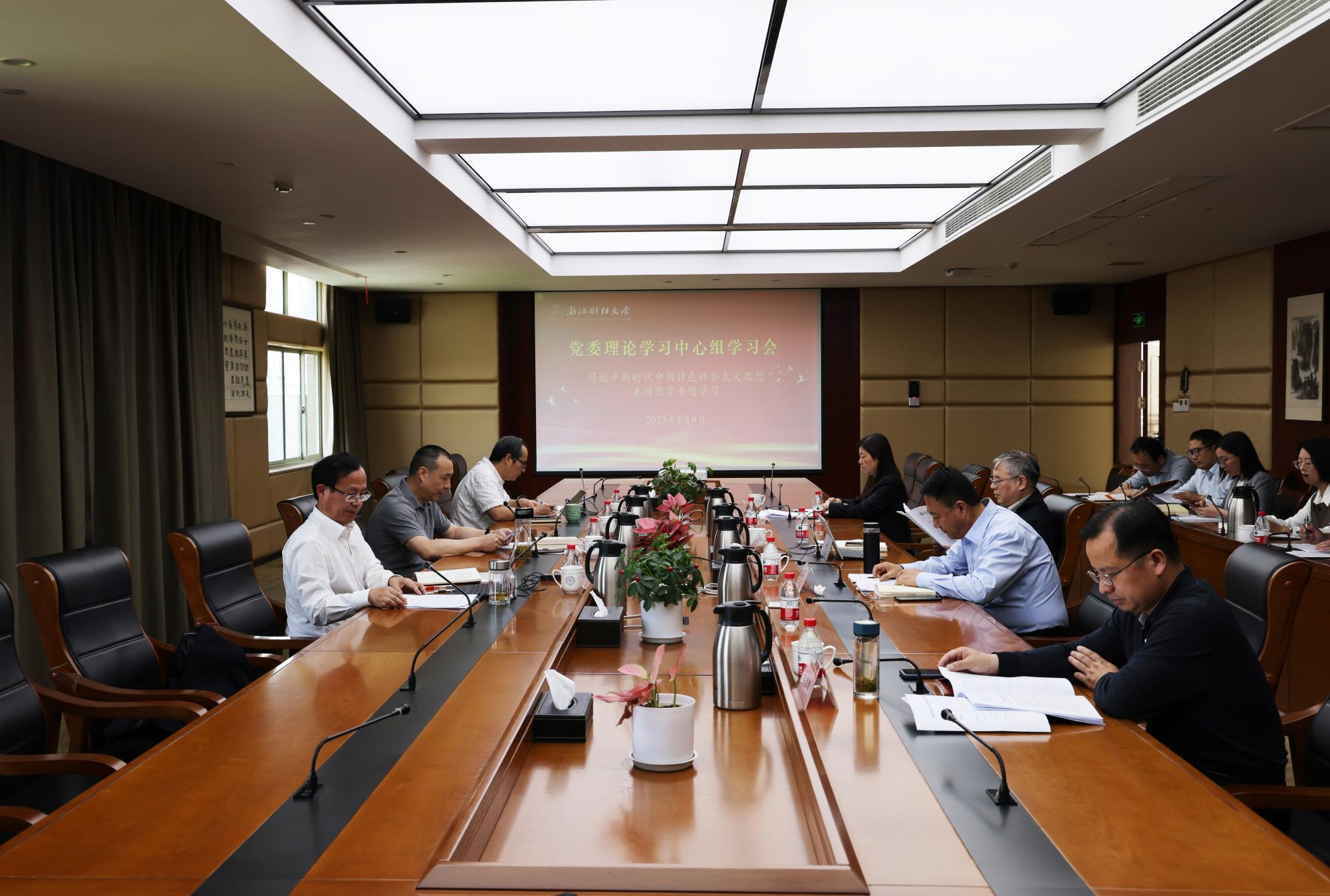 本网讯 5月9日,校党委理论学习中心组举行深入学习贯彻习近平新时代中国特色社会主义思想主题教育第二次专题学习会,深入学习领会习近平总书记关于科技创新、数字经济的重要论述,同时集中进行《习近平新时代中国特色社会主义思想专题摘编》学习。校党委书记李金昌主持会议并讲话,理论学习中心组成员参加学习,相关职能部门负责人列席会议。