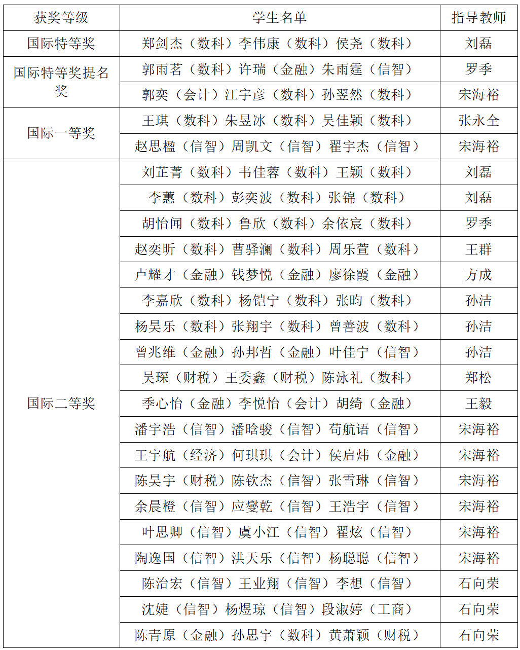 本网讯 近日,2023年美国大学生数学建模竞赛成绩揭晓,我校学子再创佳绩,荣获国际特等奖1项、国际特等奖提名奖2项、国际一等奖2项、国际二等奖19项,实现了学校在该赛事上的新突破。特等奖团队同时被授予美国数学学会特别奖,是学校参赛以来首次获得该项荣誉。