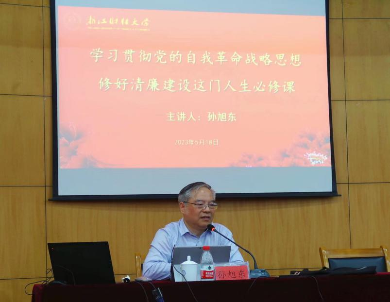 本网讯 5月18日,学校组织开展第三届“扬清风正气,建清廉买球”警示教育月系列活动之廉洁从政教育活动。校党委委员、纪委书记、监察专员孙旭东以《学习贯彻党的自我革命战略思想 修好清廉建设这门人生必修课》为题作专题辅导报告。