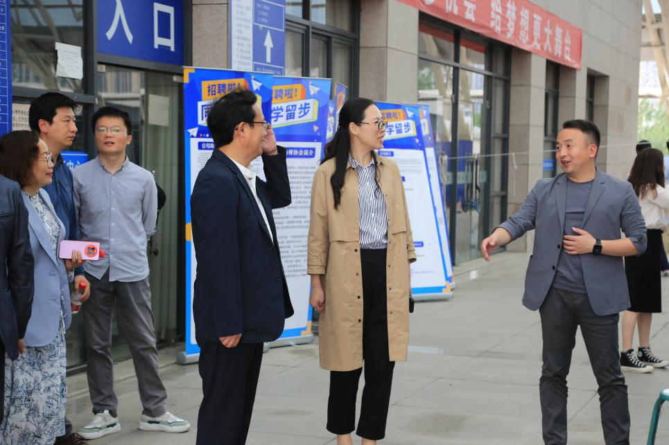 本网讯 5月18日,2023届毕业生就业招聘会暨2024届毕业生实习招聘会在下沙校区举行。校党委副书记黄建新来到招聘会现场与用人单位代表进行了深入交流,并与应聘毕业生亲切交谈。