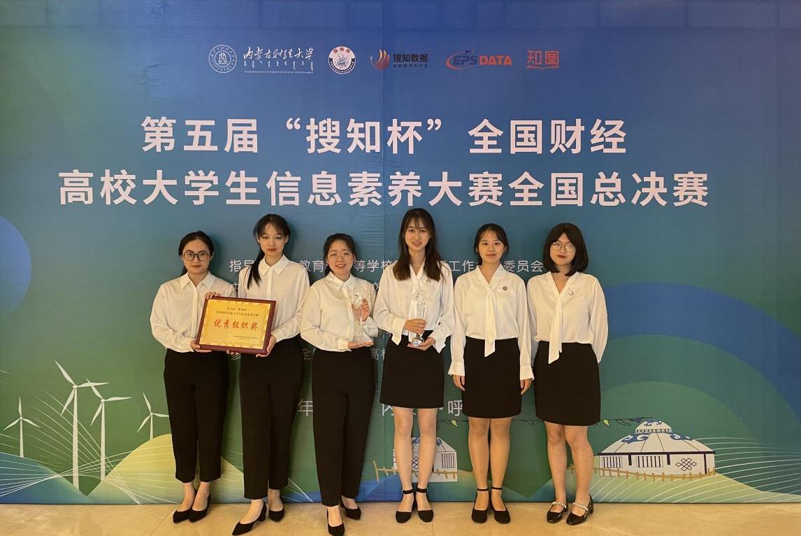 本网讯 近日,第五届“搜知杯”全国财经高校大学生信息素养大赛总决赛在呼和浩特落下帷幕。学校荣获全国一等奖1项、二等奖1项、最佳展示奖1项和优秀组织奖,图书馆顾明哲、臧弘毅老师获评最佳指导教师。