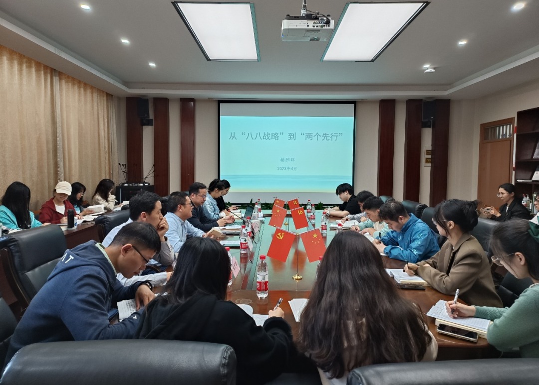 5月9日和23日,党委委员,组织部、宣传部、统战部部长楼胆群以《从“八八战略”到“两个先行”》为题,分别为数据科学学院研究生第一党支部和离退休党总支讲授专题党课。楼胆群结合浙江实际,引用大量数据和翔实资料,详细阐述“八八战略”的历史背景、基本内容、实践布局和时代价值,对浙江省第十五次党代会精神进行了生动解读,对共同富裕先行和省域现代化先行进行了深入阐释。他鼓励学生党员要勇挑重担、勇于担当,以更高站位理解和把握“八八战略”,用青春和智慧积极投身于“两个先行”的生动实践中,以更大的决心担负“时代使命”,贡献青年力量。