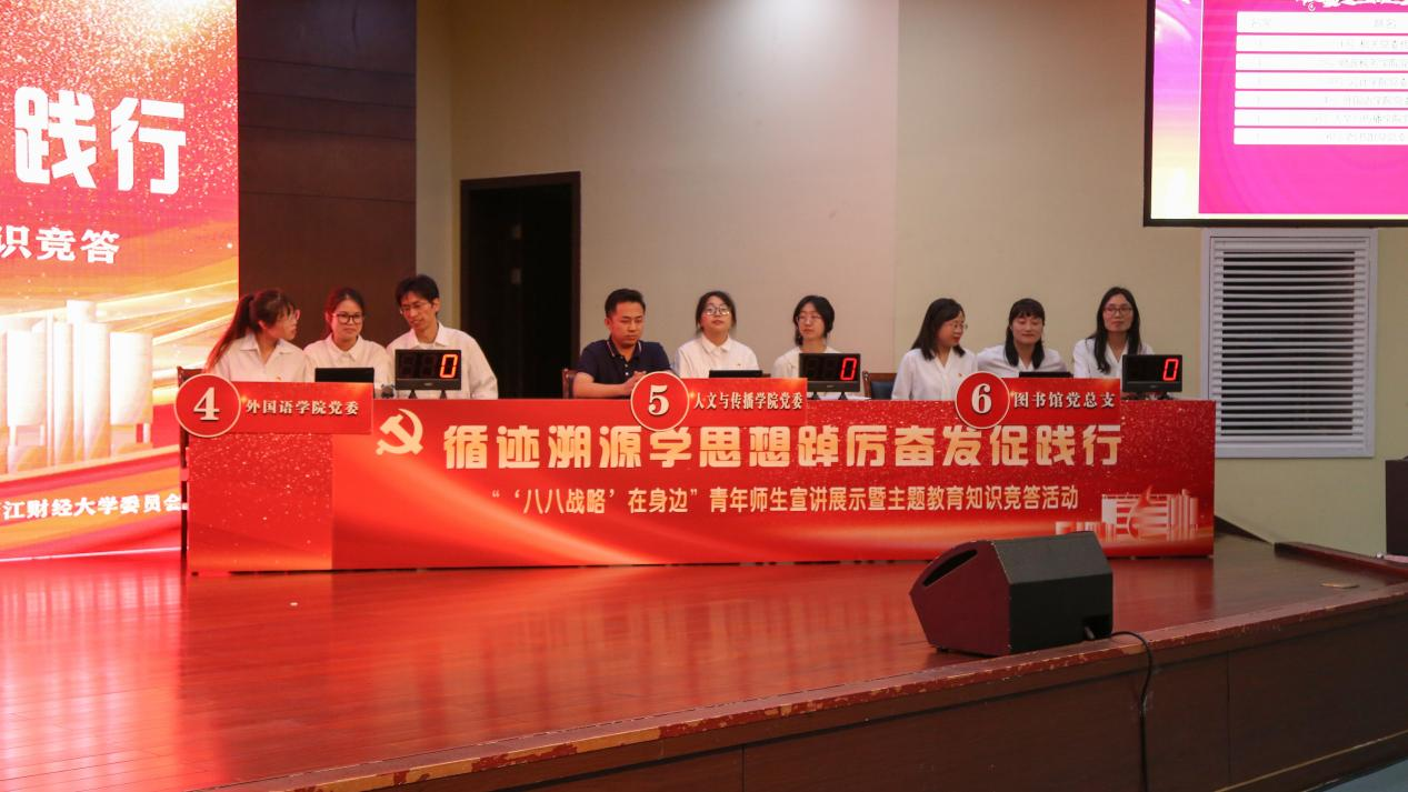 楼胆群指出,今年是全面贯彻党的二十大精神的开局之年,是“八八战略”实施20周年。举行“‘八八战略’在身边”青年师生宣讲暨主题教育知识竞答活动,是学校深入开展学习贯彻习近平新时代中国特色社会主义思想主题教育的一项重要内容。他强调,党员师生要深化思想认识、提高政治站位,以高度的行动自觉把主题教育推向深入。一是凝心铸魂,深学细悟创新理论。要持续深入“学理论”,秉持真学、真懂、真信、真用的“一体化”学习思维,坚持原著一篇一篇读,原文逐段逐句学,原理一个一个悟,持续深化对习近平新时代中国特色社会主义思想的理解和把握。二是循迹溯源,学深讲透“八八战略”。要创新形式开展宣传,做好“千万工程”“浦江经验”的学习贯彻,以“新”的话语、“活”的讲述、“潮”的传播,宣讲好“八八战略”的重要意义、核心内容、战略举措,讲好“‘八八战略’在身边”的生动故事。三是融会贯通,以学促干彰显担当。要紧扣主业“增实效”,以学促用,以务实的工作作风,以有为的工作成效把主题教育推向深入,努力在中国式现代化新征程上干在实处、走在前列、勇立潮头。