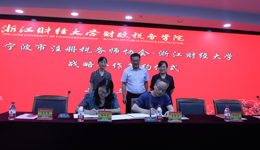 本网讯 近日,学校与宁波市注册税务师协会举行税务人才培养战略合作协议签约暨实习基地授牌仪式。校党委副书记徐晓东,宁波市注册税务师协会会长、市行业党委常务副书记史东篱,协会副会长余龙达等出席仪式。