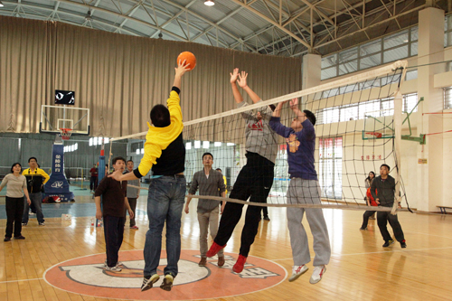 11月27日 在2013“梦想杯”教职工软式排球比赛决赛中,外国语学院队获得冠军