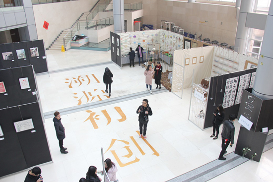在文化长廊还进行了学院学生创业展示。艺术学院具有浓厚的创业传统,在刚刚结束的2014届毕业生就业质量跟踪调查中,学院创业率在全省领先。刚刚入驻清华长三角研究院“蓝创梦工厂”的三家公司、校友企业等近十家有代表性的公司进行了现场展示,引起了同学们的极大兴趣。