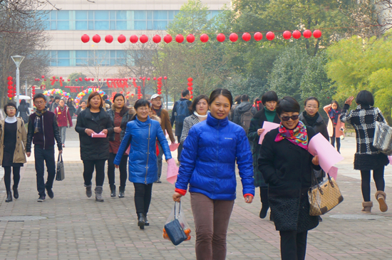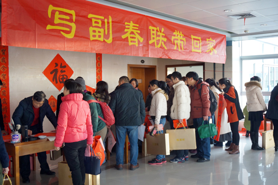“写副春联带回家”活动在文化中心二楼举行。校书画协会、学生书法爱好者们志愿服务,迎新送福,写赠春联千余幅。除了请书法专家书写自己喜爱的春联,有的还自己动笔挥毫,兴致昂扬、其乐融融。大红的福字、吉庆的氛围、浓郁的笔墨书香表达了大家对新年的美好祈福。