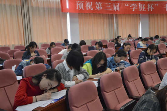 “学涯杯”书法大赛是我校规模最大、水平最高的书法盛事,今年已是第三届,在全校师生中的影响力也日益扩大。本届大赛以读书节和大学生文明修身主题为契机,旨在提升校园文化底蕴,弘扬优秀传统文化。