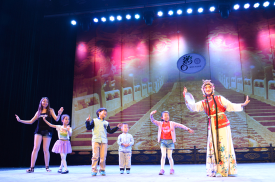 随着帷幕缓缓拉开,音乐响起,京剧《宝莲灯》呈现在我们面前。剧情扣人心弦,演员舞刀弄枪的飒爽英姿迎来观众的掌声连连,浑厚的唱腔与悠扬的京胡完美地配合在一起,使人深深沉醉于国粹的独特魅力。随后,情景表演《京郊行》,流派演唱《定军山》、《失子惊疯》、《铡美案》,武戏《三岔口》,旦角演唱《天女散花》、《卖水》、《探谷》,武戏《战金山》精彩上演。老生、青衣、花脸几个行当相继登台,武生、旦角轮番亮相。流派纷呈、文武兼备的剧目吸引眼球,其间的互动环节更是妙趣横生,观众在欣赏京剧的同时,也有机会学习京剧中的身段表演,有了更为直接深入的体验和了解。