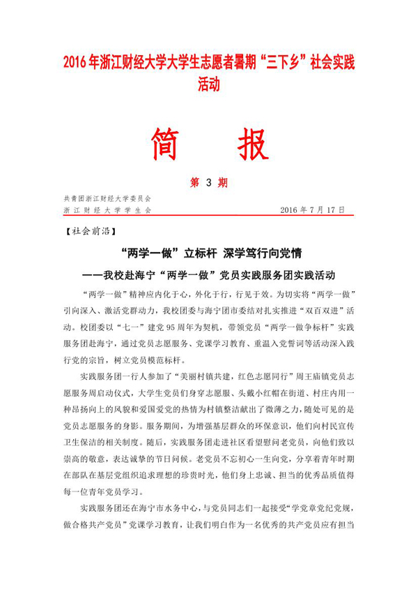 2016年暑期社会实践活动简报第3期