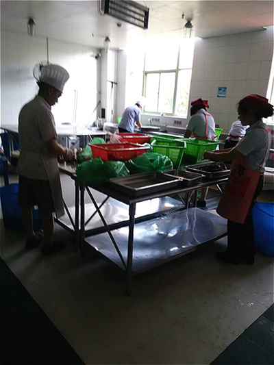 每天天蒙蒙亮的时候,食堂员工就开始装卸菜品物料,整理、清洗、加工、烹饪、装盘,分工合作,各司其职。厨房里熊熊燃烧的灶火让室内热浪滚滚,大厨们翻炒颠勺、起锅装盘,汗水浸透工作服并未影响他们的工作效率,因为早已习惯。学术餐厅在暑期承担着近千名留校工作学习的师生的一日三餐,后勤人用精心配制的丰盛餐品和整洁舒适的就餐环境提供安全放心的餐饮保障。