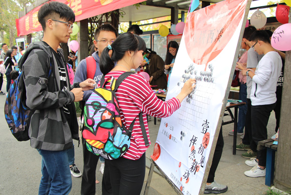 本网讯(通讯员 王铠基 杨忍)10月18日,由校团委主办、财政税务学院团委承办的以“壹元初见,怦然‘新’动”为主题的“一元钱”工程活动在文化长廊举行。