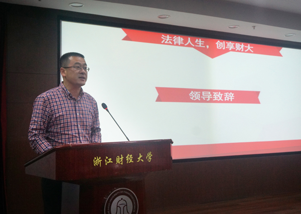 本网讯(通讯员 赵聪)10月27日下午,以“法律人生•创享财大”为主题的校首届法律文化节暨普法宣传月启动仪式在下沙校区举行。校党委委员、党委宣传部部长徐晓东,法学院院长李占荣、党委书记朱丹及相关部门负责人和各学院普法联络人出席本次活动。