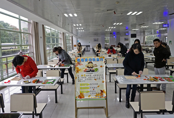 “卷卷寿司我最行”寿司制作、品尝活动中,老师们一展身手,互相切磋,体验了制作的快乐。“走进后厨之今天我下厨”活动邀请学生们参观了后厨的米饭生产线、蒸饭间、菜肴烹饪间、洗切操作间等,还体验了一把食堂做菜的过程。应急救护知识普及讲座上,学生们跃跃欲试,主动参与实践体验,既充分了解了急救知识的重要性,又增强了处理此类突发疾病的应对能力。在师生座谈会上,大家对食堂的饭菜质量、价格、就餐环境等给予了肯定,同时也就服务质量、菜肴口味等方面提出了意见和建议。