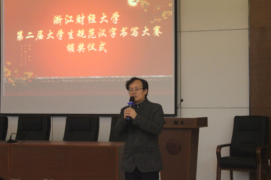 颁奖典礼上,副校长黄建新向获奖的同学表示热烈的祝贺。他表示,书法艺术能培养人的浩然正气,也是一个人的第二形象,是中华优秀传统文化的一个重要组成部分,希望同学们从中学习到书法艺术的精髓。同时,他也希望大赛能够一年一年地举办下去,让它成为一个文化教育的品牌。